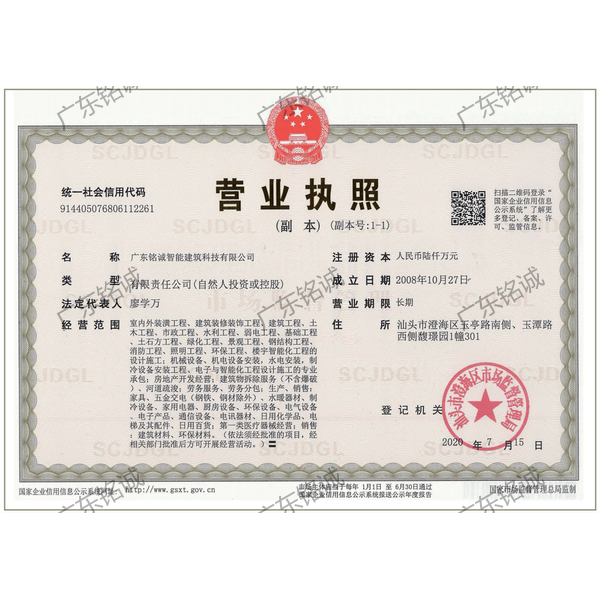 廣東銘誠智能建筑科技有限公司成立于2008年,公司注冊(cè)資金為6000萬元,集辦公裝修、酒店裝修、家庭裝修、軟裝裝飾、娛樂場(chǎng)所裝修為一體的裝飾公司,率先提出“創(chuàng)造現(xiàn)代人文空間,挑戰(zhàn)業(yè)界高峰”的雄壯口號(hào),并以此為目標(biāo),完成了一大批具有影響力的大型公裝工程:其中包括廣州國際中醫(yī)藥展貿(mào)中心、奧飛澄海音樂廳、澄海區(qū)國家稅務(wù)局、澄海興信小額貸款、澄海潮商村鎮(zhèn)銀行、汕頭龍湖賓館、澄海豪庭大酒店、御園國際飲食城、澄海福晉軒酒家、享樂匯保健有限公司、假日商務(wù)酒店、尚景康園物業(yè)、星輝車模股份有限公司、奧飛動(dòng)漫有限公司、香港國際玩具、汕頭萬基貿(mào)易有限公司、泰興源實(shí)業(yè)有限公司、汕頭皇冠玩具有限公司等;家裝工程包括南澳黃金海岸整幢的精裝房、中信華府、富春華庭、金信鳳凰名城、凱旋花園、中信金城、柏嘉半島、陽光海岸、金葉島等高等住宅。 ? 廣東銘誠智能建筑科技有限公司經(jīng)過十余年的建筑裝飾裝修施工領(lǐng)域項(xiàng)目積淀,于2018年2月取得“建筑裝修裝飾工程專業(yè)承包二級(jí)”、“建筑機(jī)電安裝工程專業(yè)承包三級(jí)”、“建筑工程施工總承包三級(jí)”、“施工勞務(wù)不分等級(jí)”、“安全生產(chǎn)許可證”等專業(yè)資質(zhì),并于2021年8月建筑裝修資質(zhì)正式升級(jí)為“建筑裝修裝飾工程專業(yè)承包一級(jí)”。這是對(duì)企業(yè)規(guī)模、工程業(yè)績(jī)、管理水平、誠信表現(xiàn)的肯定,是企業(yè)實(shí)力與能力的展現(xiàn)。 ? 公司每一項(xiàng)工程都始終堅(jiān)持“精美設(shè)計(jì)、精心施工、確保合同承諾;勤奮開拓、追求突出、創(chuàng)造時(shí)代精品”的質(zhì)量方針,力爭(zhēng)做一項(xiàng)工程,樹一座豐碑。 ? ?銘誠擁有一支由專業(yè)的營(yíng)銷精英和客戶顧問組成的營(yíng)銷隊(duì)伍,勤奮、敬業(yè)的每一位銘誠員工將本著“贏在別人休息時(shí)”的專業(yè)精神,為客戶提供全程營(yíng)銷及售后服務(wù),確保客戶的合法利益,提供體貼周到的服務(wù),做到讓顧客滿意。 ? 銘誠擁有一批資老牌室內(nèi)環(huán)境設(shè)計(jì)師,以“現(xiàn)代人文空間”為設(shè)計(jì)理念,為客戶提供人性化、差異化、智能化的室內(nèi)環(huán)境設(shè)計(jì)服務(wù),準(zhǔn)確的將人性化特點(diǎn)與室內(nèi)環(huán)境相融合,達(dá)到了“現(xiàn)代人文空間”的和諧統(tǒng)一。 ? ? ? ?自主創(chuàng)新、視社會(huì)責(zé)任為己任的精神使我們?cè)诎l(fā)展的道路上屢獲殊榮:不斷提升的銘誠品牌知名度和美譽(yù)度,靠的是優(yōu)質(zhì)的產(chǎn)品,靠的是不斷提升的營(yíng)業(yè)績(jī),靠的是國內(nèi)的核心技術(shù)和誠信的服務(wù)。相信通過銘誠人的努力,銘誠將會(huì)不斷以新的姿態(tài)為提升廣大消費(fèi)者的生活質(zhì)量做好服務(wù),為中國裝飾行業(yè)設(shè)計(jì)創(chuàng)新做出突出貢獻(xiàn)。 ? ? “忘掉競(jìng)爭(zhēng)、共
